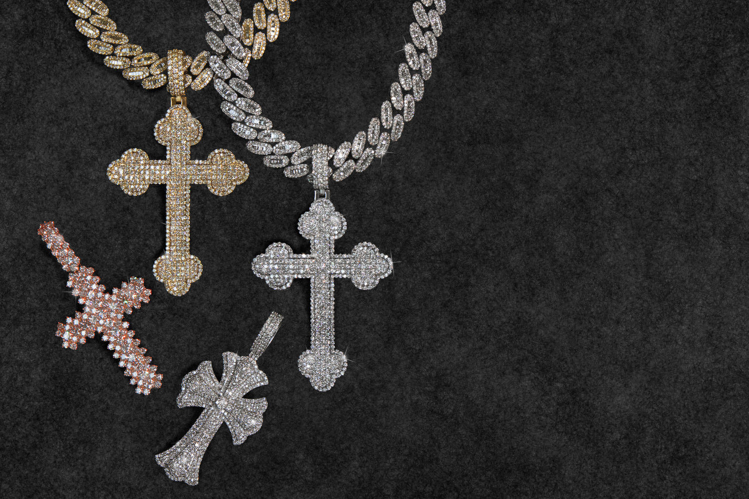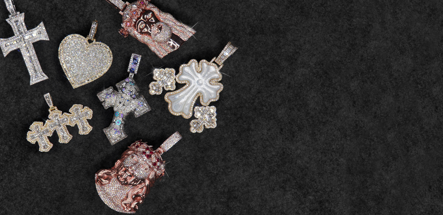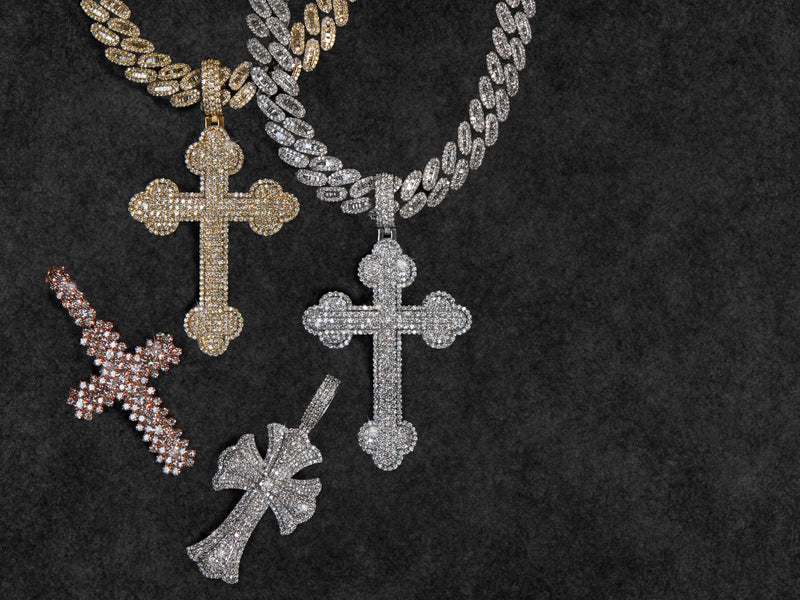 10k Solid Gold 14mm VS1 Diamond Custom Big Pointer Cross Chain - 10111