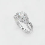 Featuring a stunning VS Center Diamond with an elegant halo and interlacing gold and diamond band