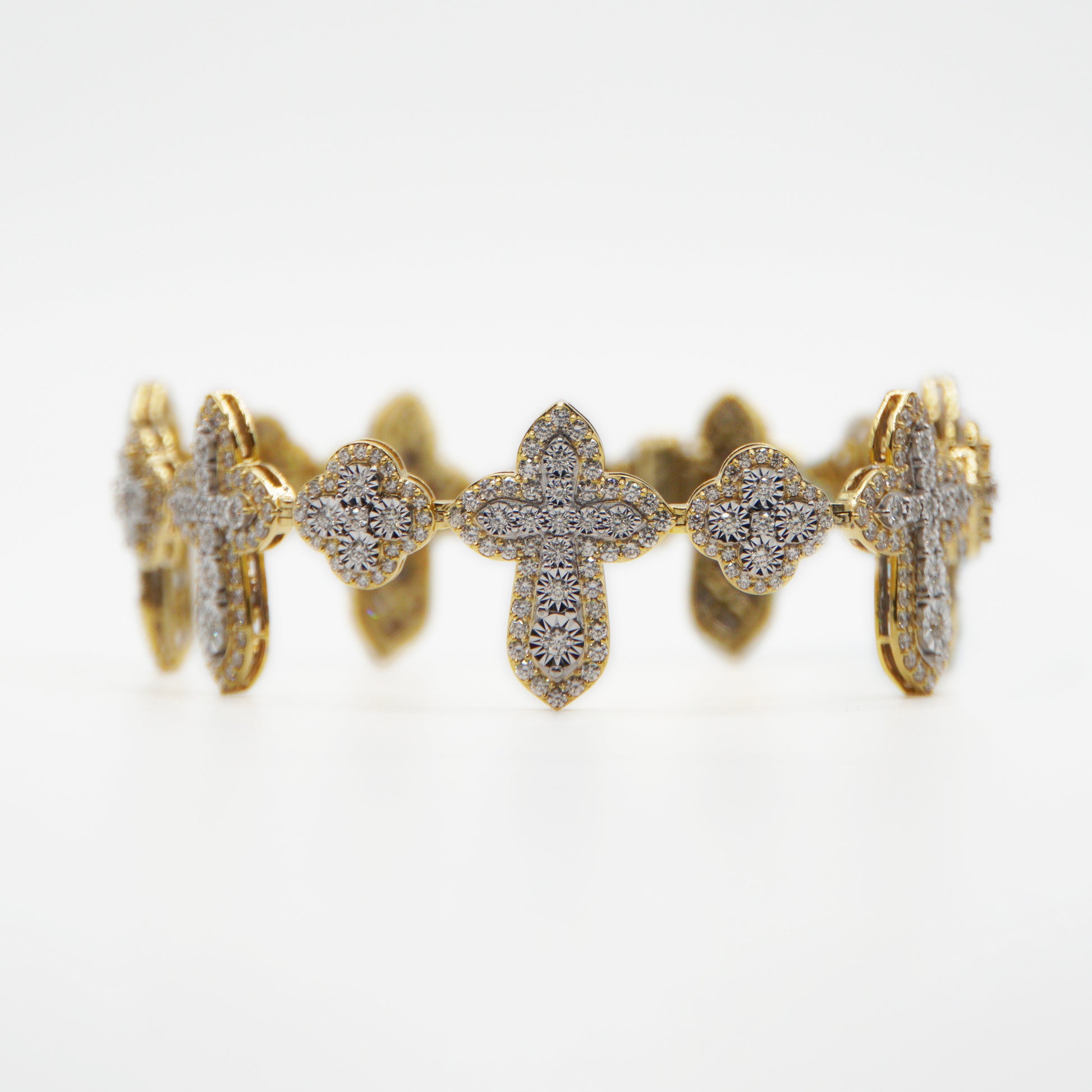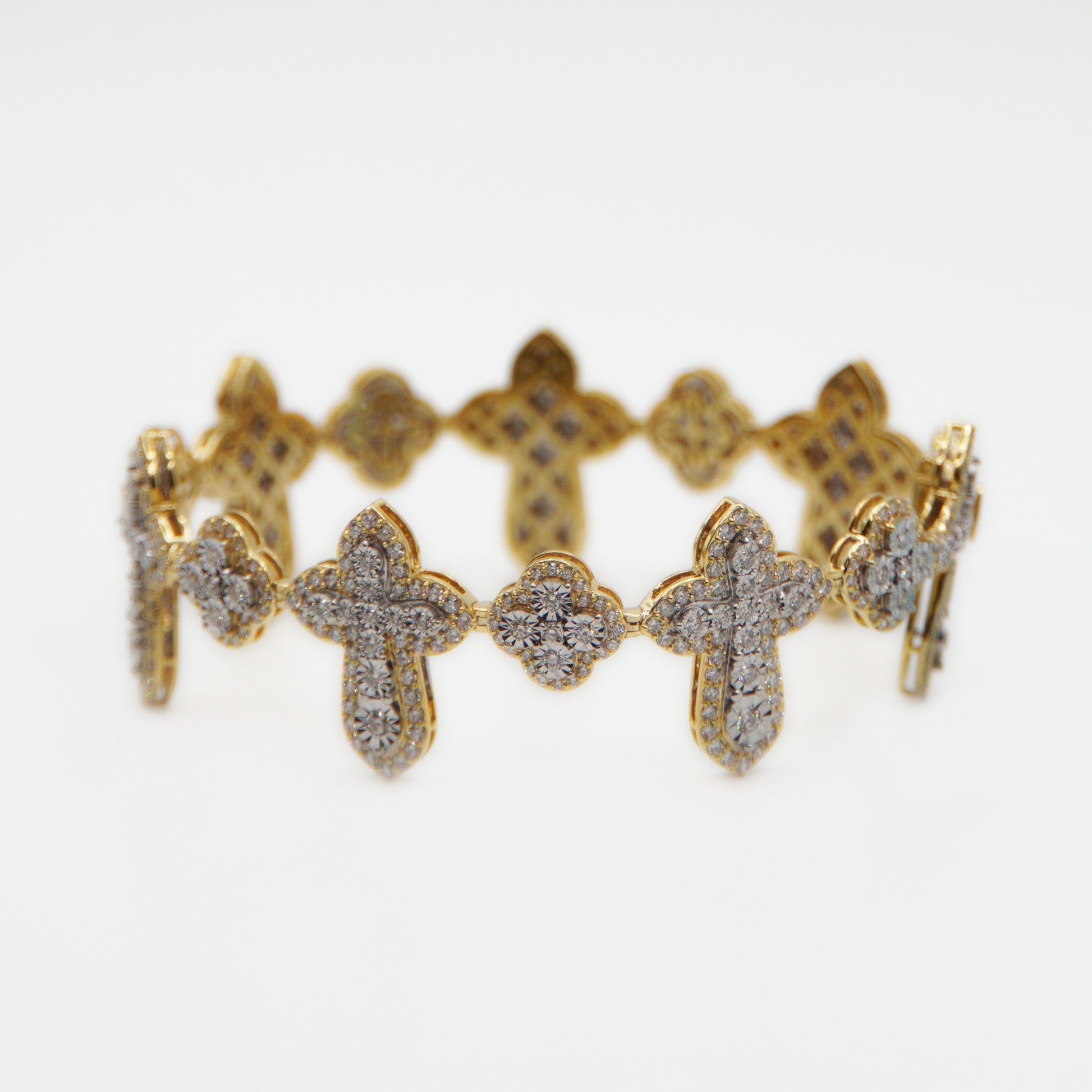 10k Solid Gold VS Diamond Cluster Cross Clover Bracelet - 20181