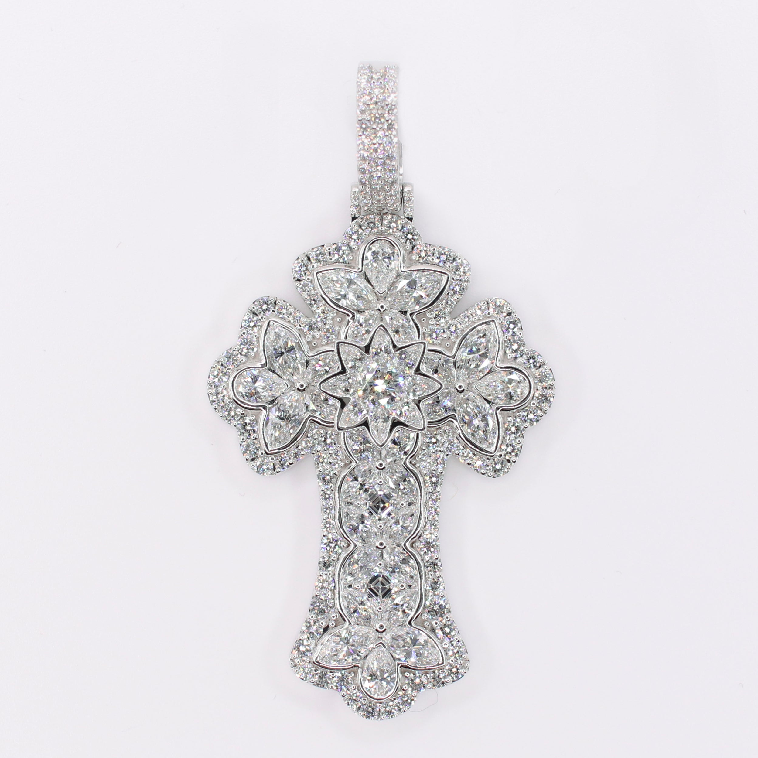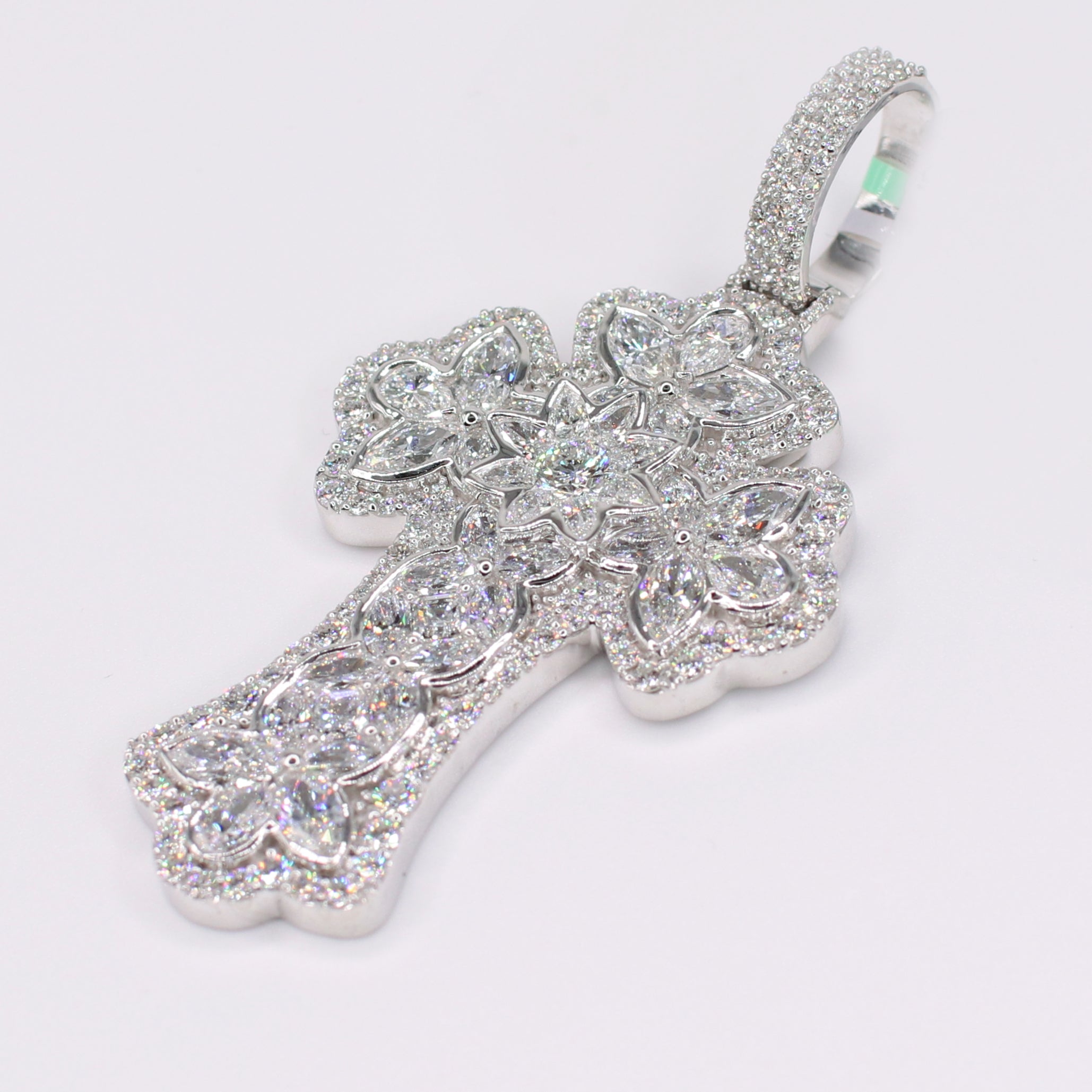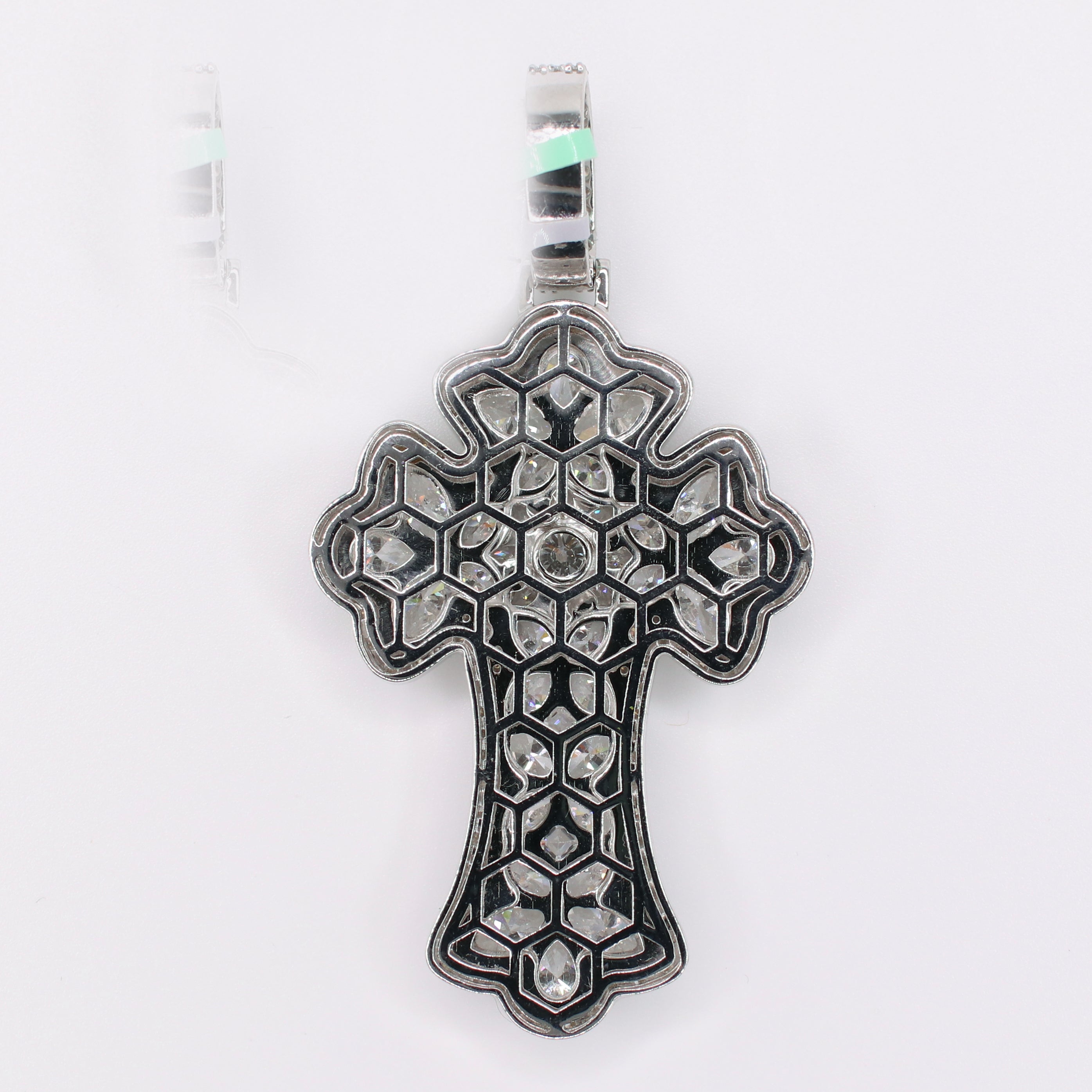 10k Solid White Gold Lab Diamond Garden Of Eden Cross Pendant -60545