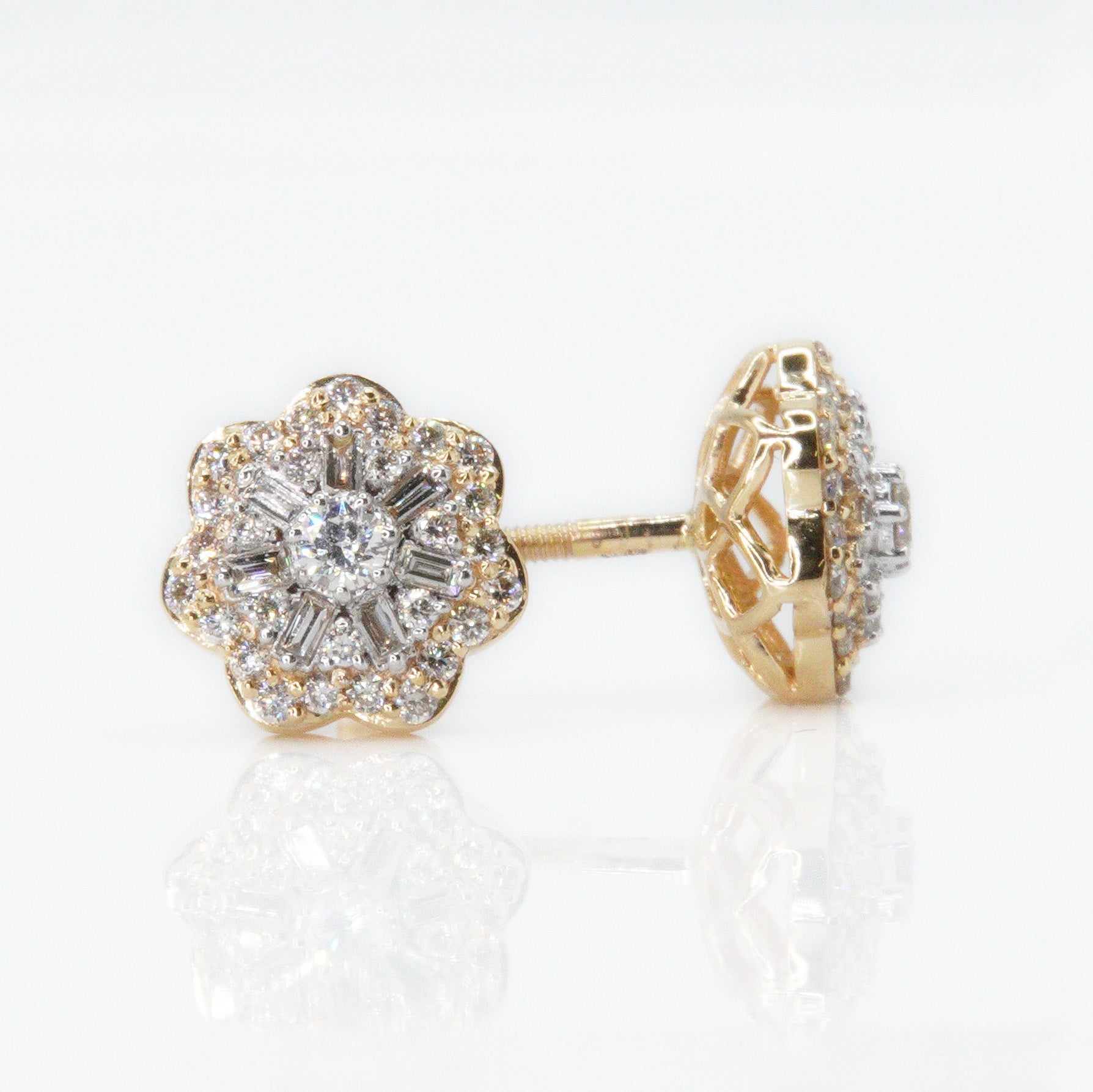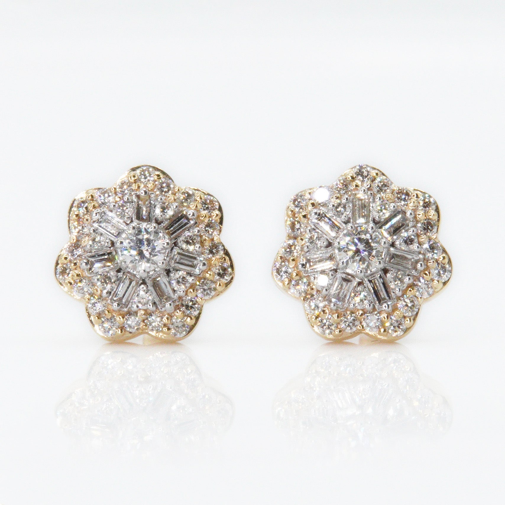 14k Solid Gold 9mm VS Diamond Baguette Snowflake Earrings - 50068