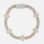 10k Solid Gold 7mm VS1 Diamond Clover Big Lock Cuban Bracelet - 20169