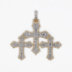 10k Solid Gold Diamond 3D Baguette Triple Cross Pendant - 60368