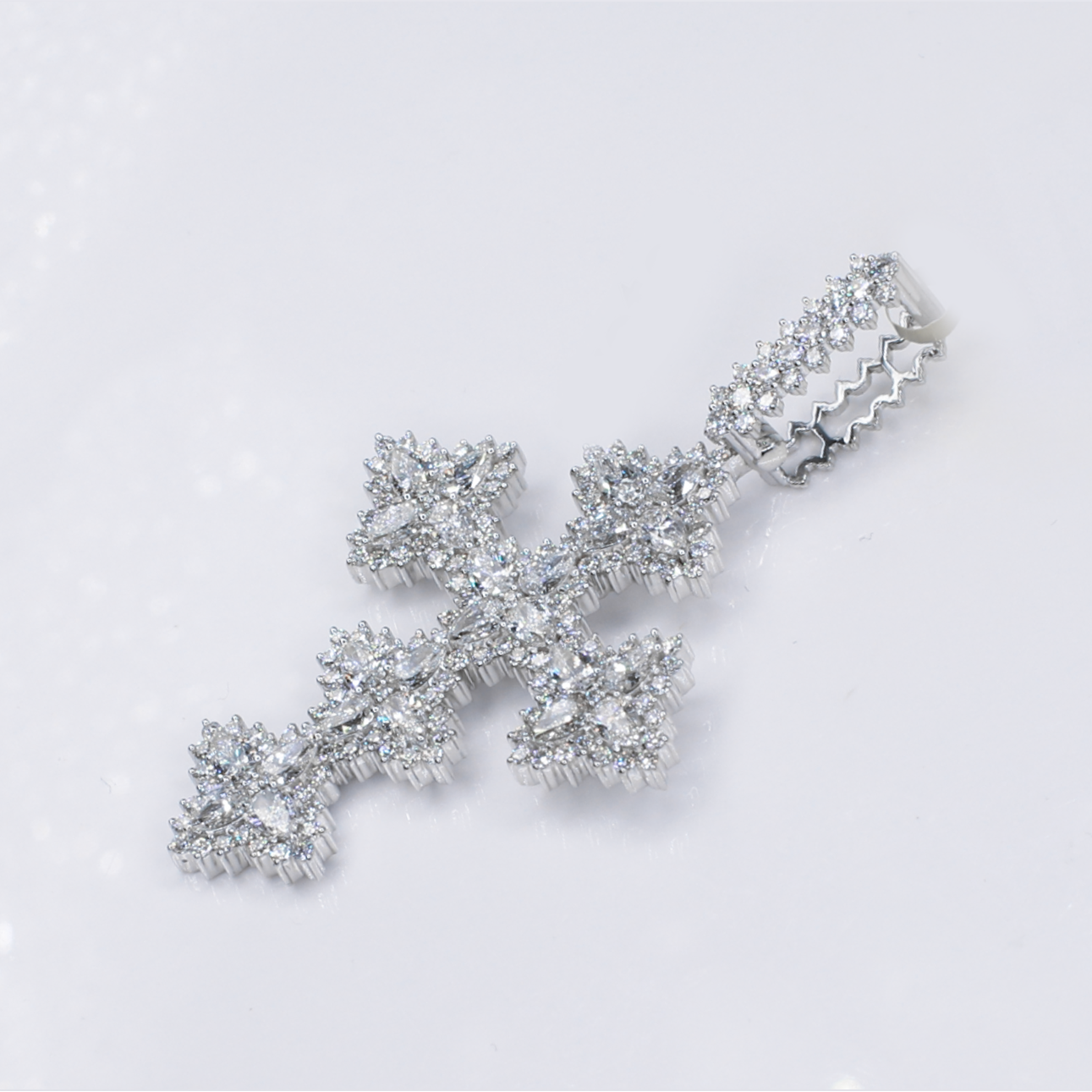 10k Solid White Gold Lab Diamond Glacier Cross Pendant - 60568
