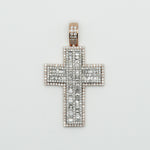 14k Solid Rose Gold VS1 Baguette Diamond 2" 3D Cross - 60244