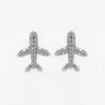 14k Solid White Gold VS1 Diamond Airplane Earrings - 50189