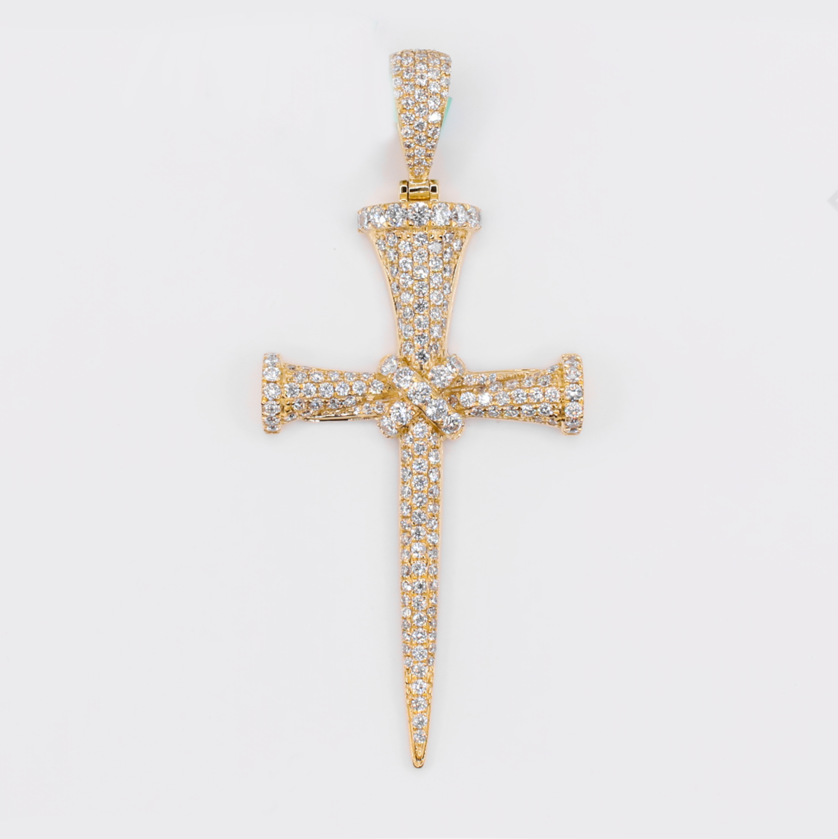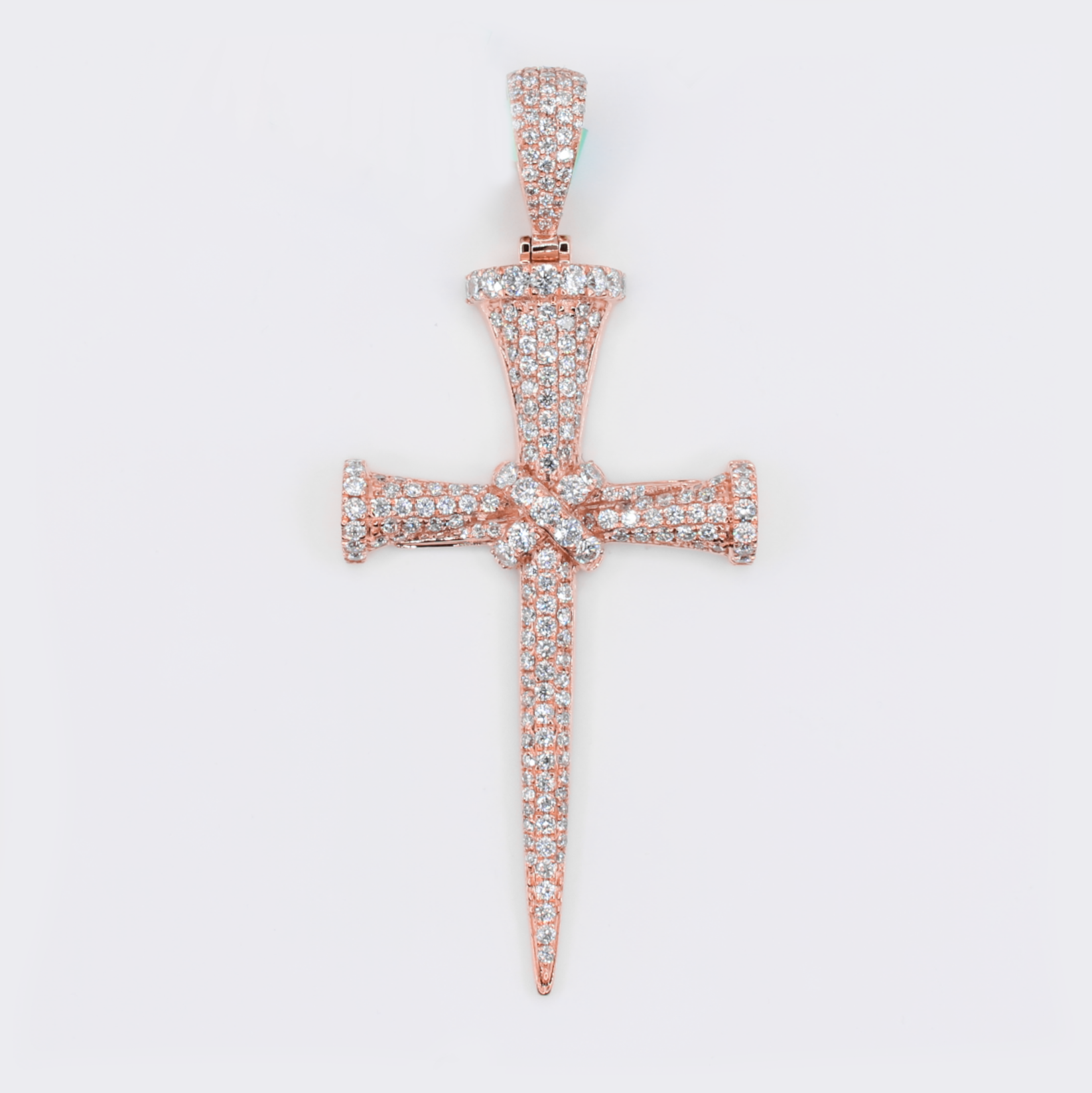 14k Solid Rose Gold VS Diamond Nail Cross Pendant - 60543