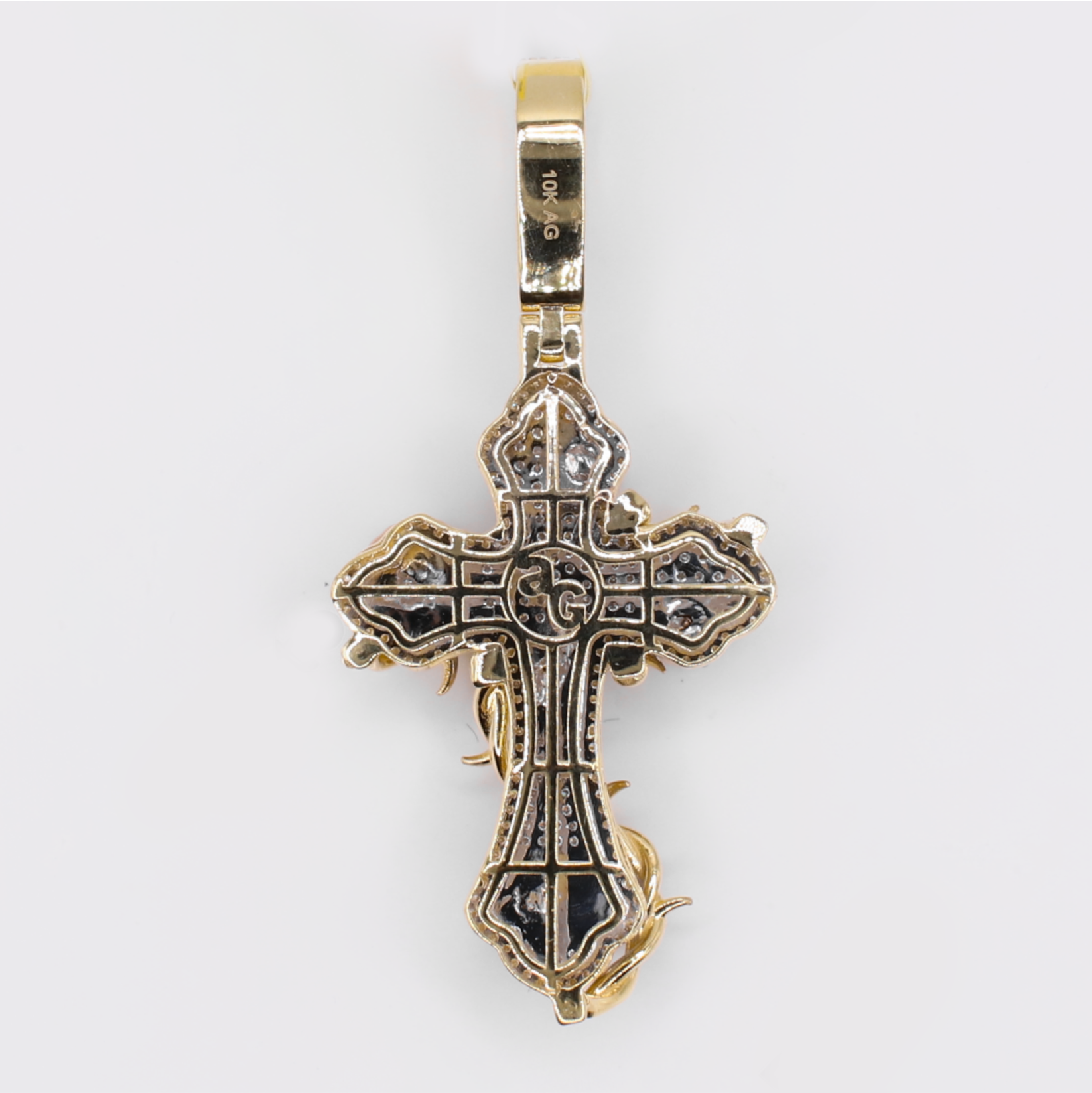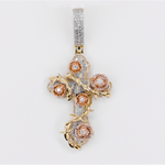 10k Solid Gold Diamond Blooming Rose Cross Pendant - 60590