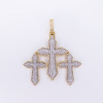10k Solid Gold Diamond Puff Triple Cross Pendant - 60481