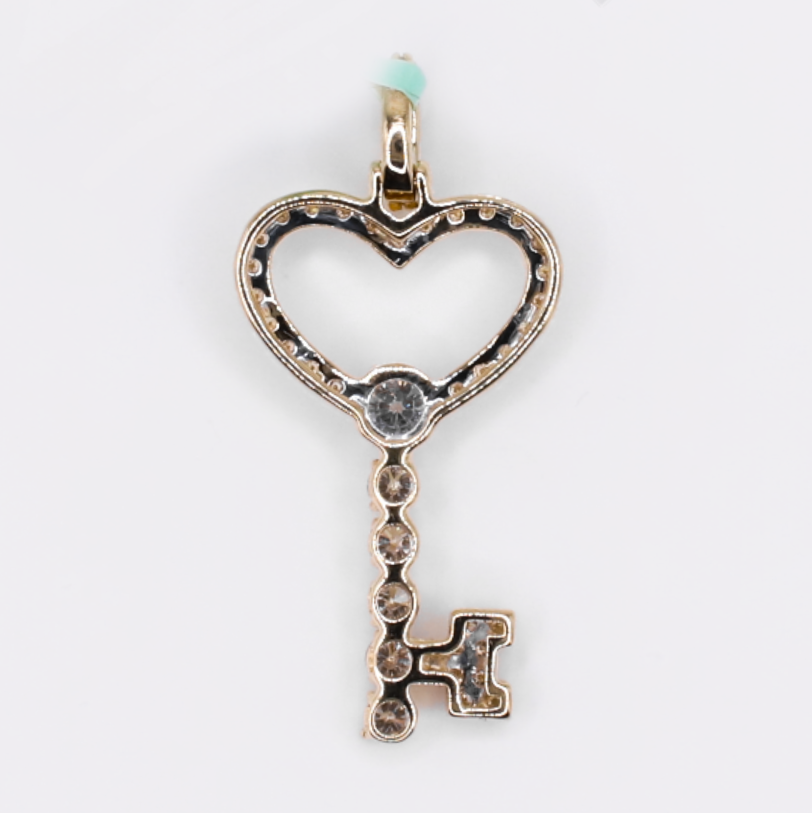 10k Solid Yellow Gold Lab Diamond Heart Key Pendant - 60563