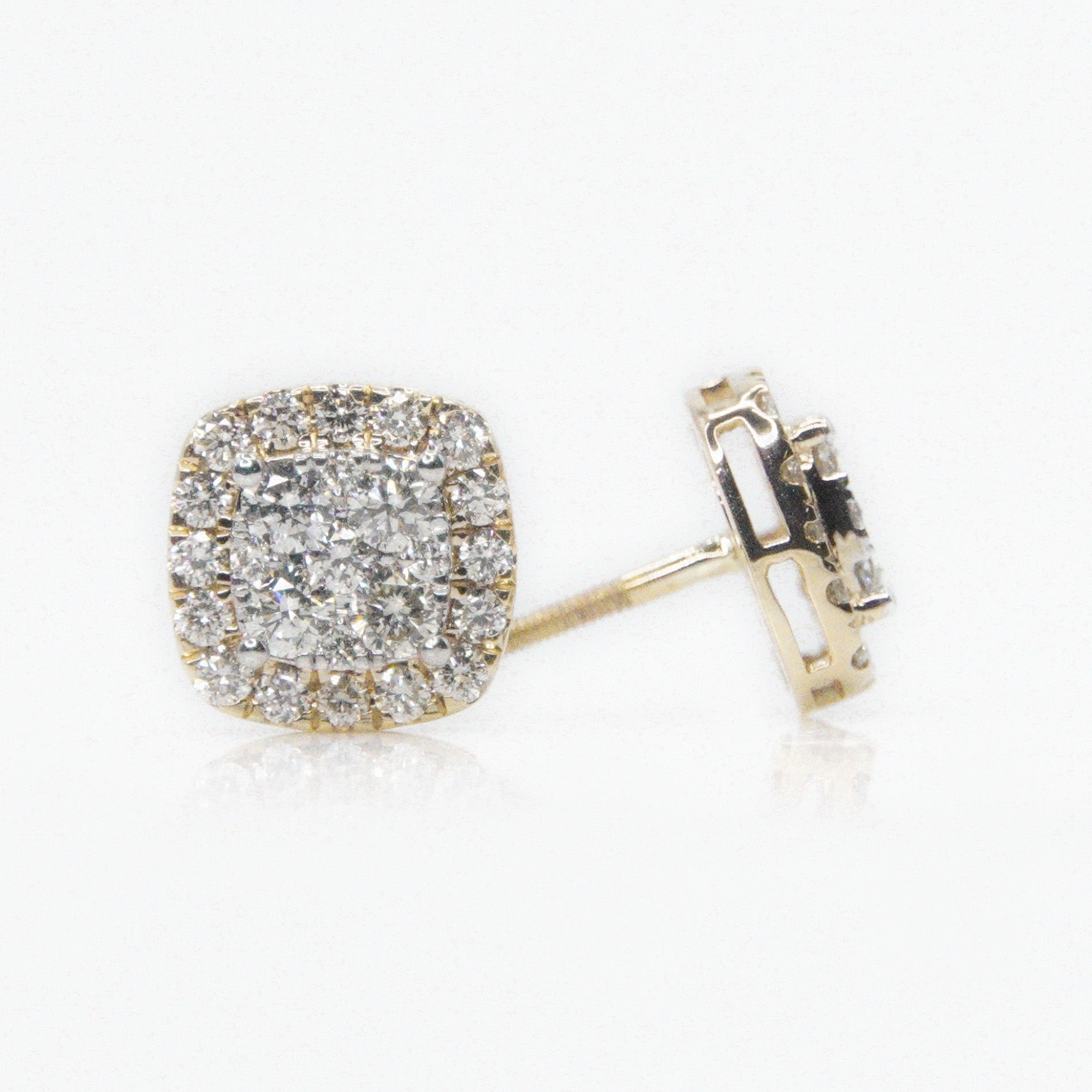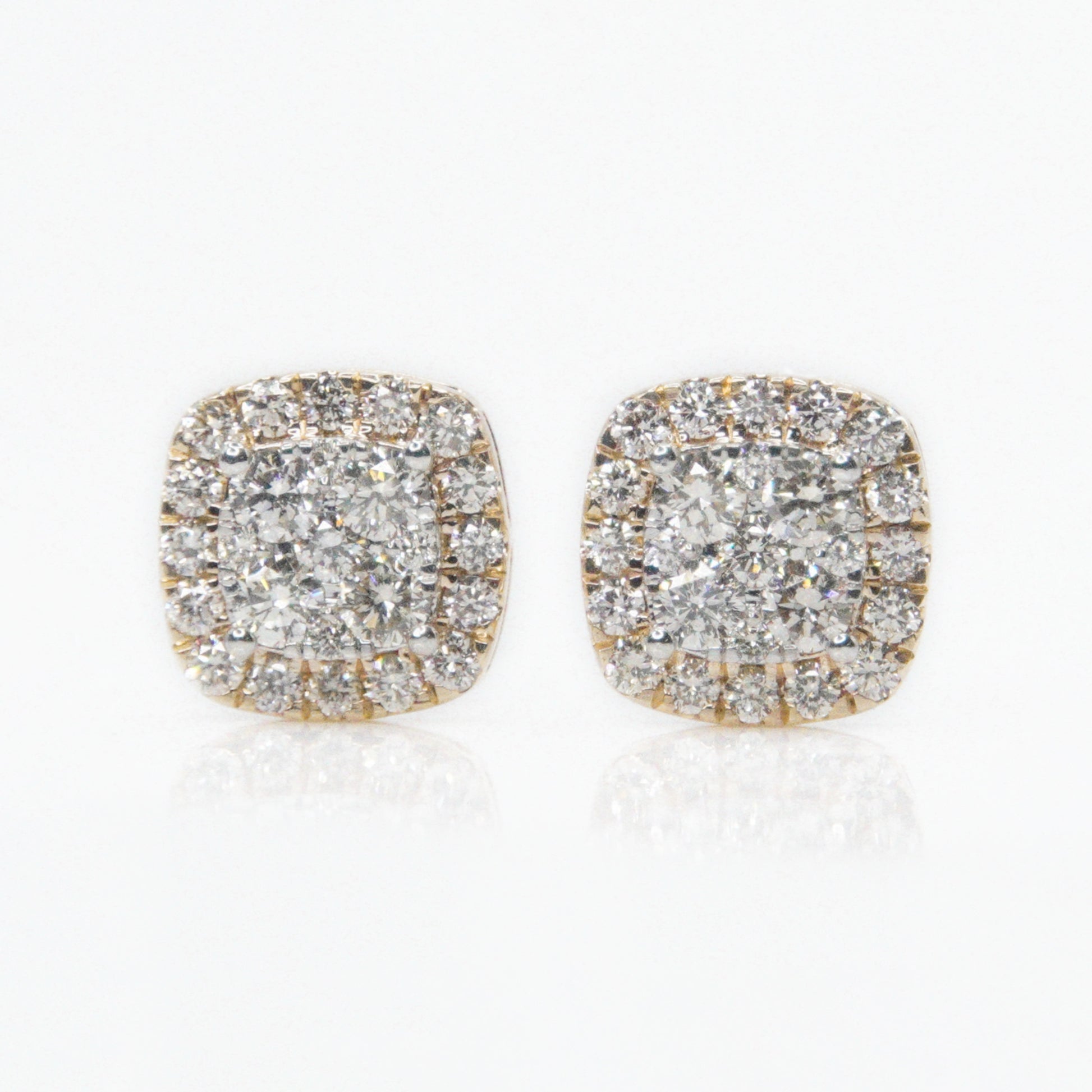 14k Solid Gold 10.5mm VS1/VS Diamond 3D Square Cushion Earrings - 50097