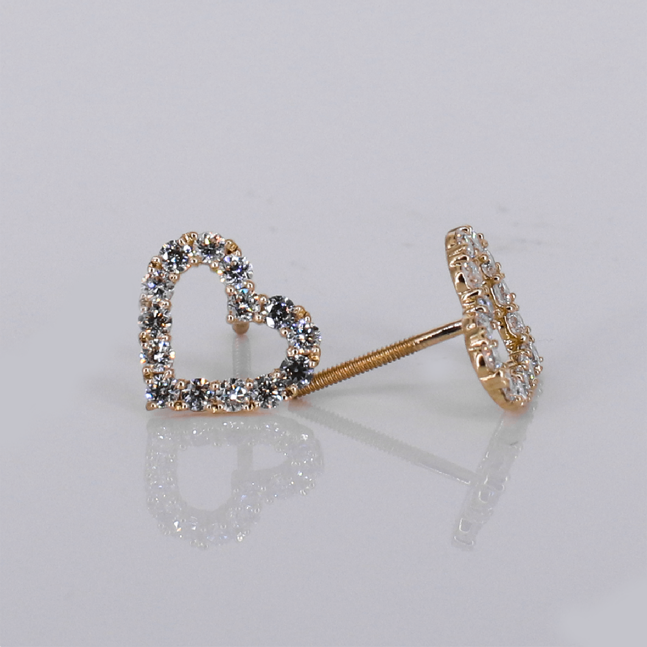 14k Solid Gold Lab Diamond Heart Earrings -50290