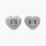 18k Solid Gold Cubed Diamond Heart Earrings - 50138