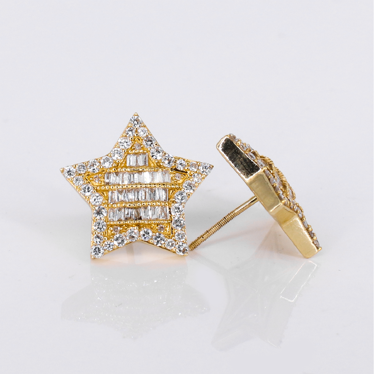 14k Solid Gold 17mm Diamond Baguette Star Earrings - 50299